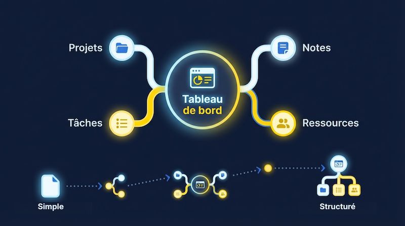 Commence simple : ne cherche pas à tout organiser parfaitement dès le départ. Démarre avec une simple to-do list. Utilise-la une semaine. Ajoute des fonctionnalités progressivement. L’erreur classique ? Vouloir tout construire d’un coup.
