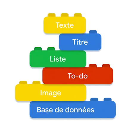 Dans Notion, tout est un bloc. Tape « / » pour voir tous les types disponibles.